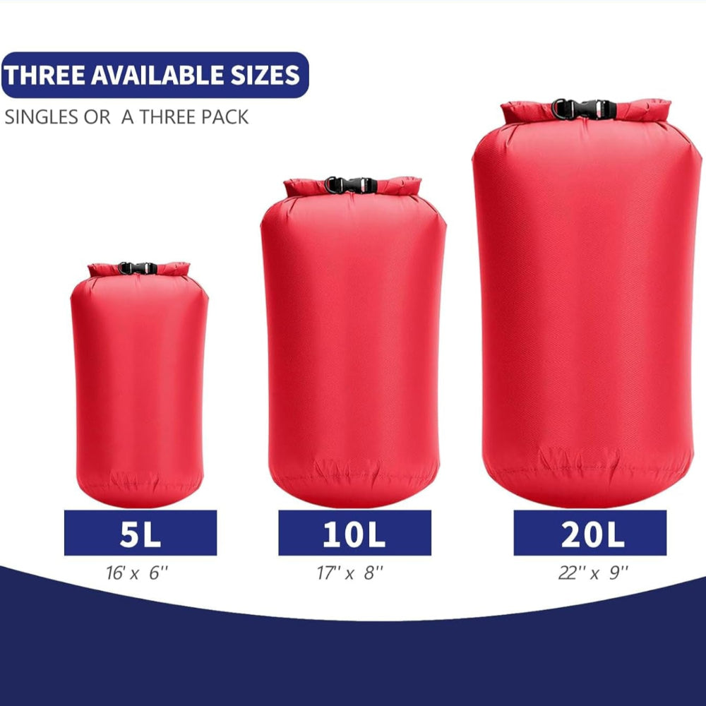 •  One (1) 3 Pack Waterproof Dry Bags - 5L & 10L & 20L Lightweight Dry Storage Bags