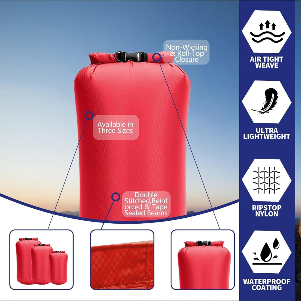 3 Pack Waterproof Dry Bags - 5L & 10L & 20L Lightweight Dry Storage Bags