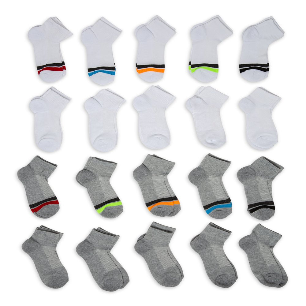 - One (1) Boys Ankle Sock, 20-Pack, Sizes S (4-8.5) - L (3-9)