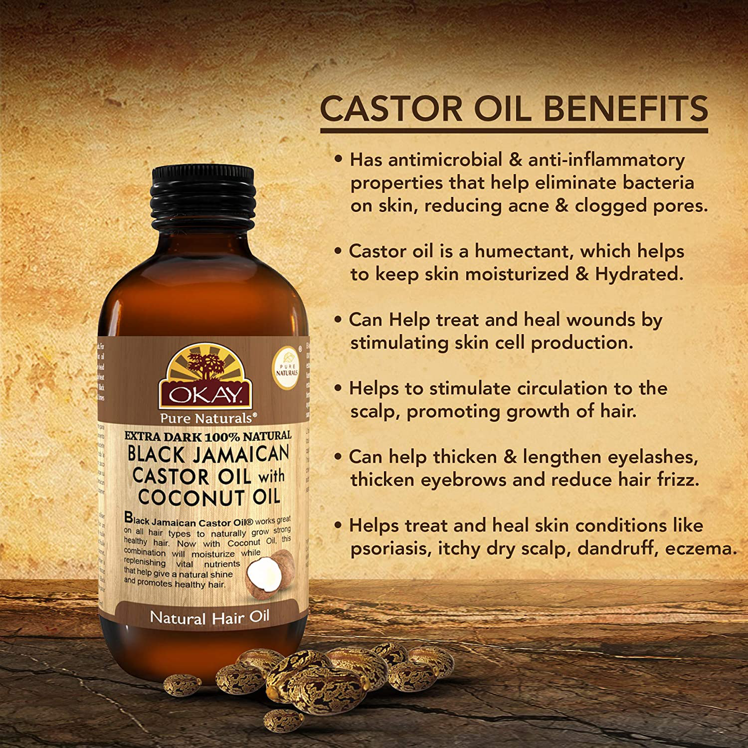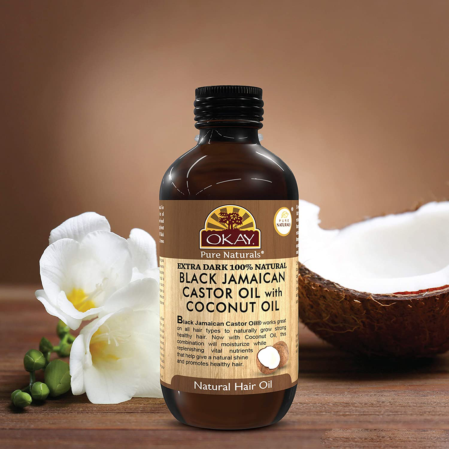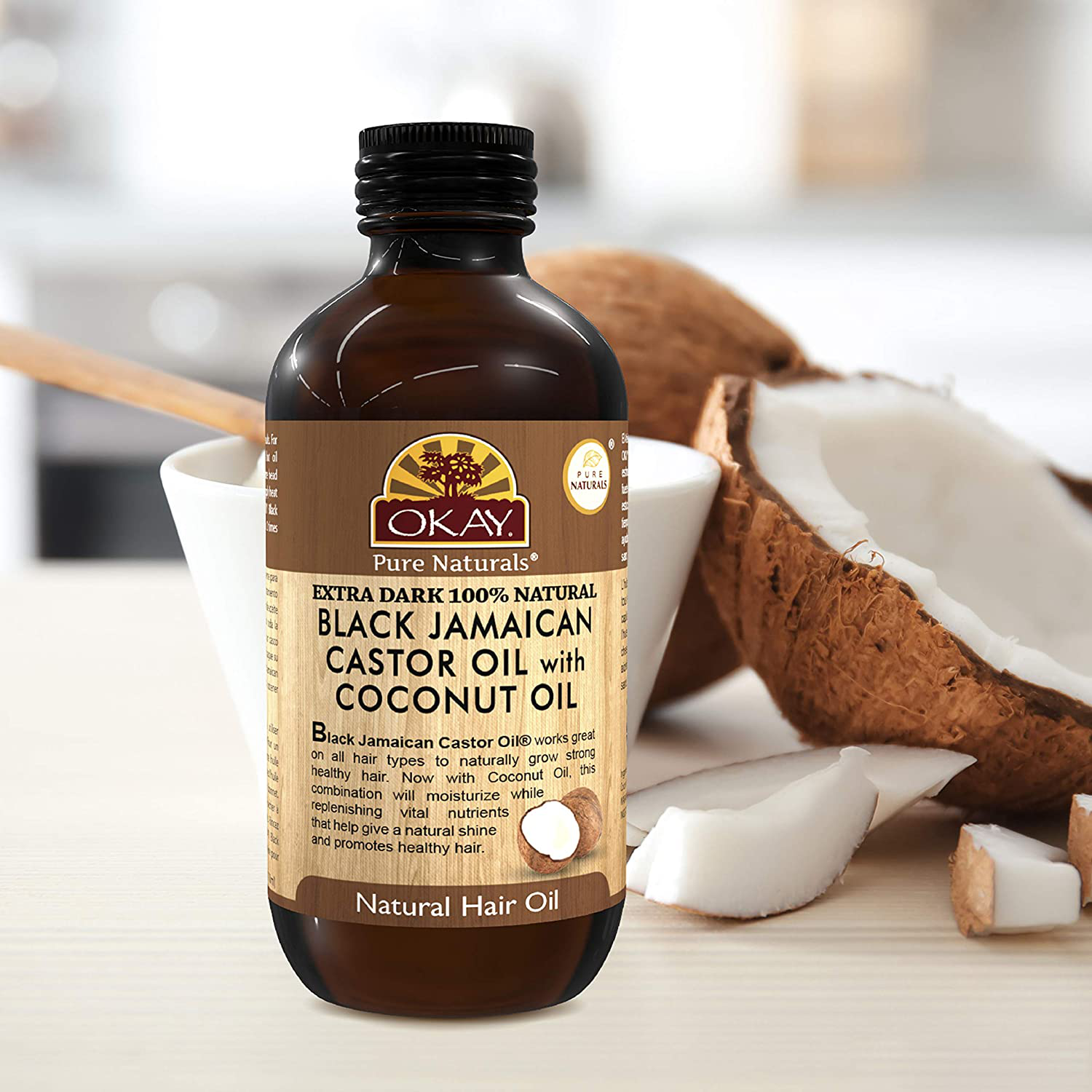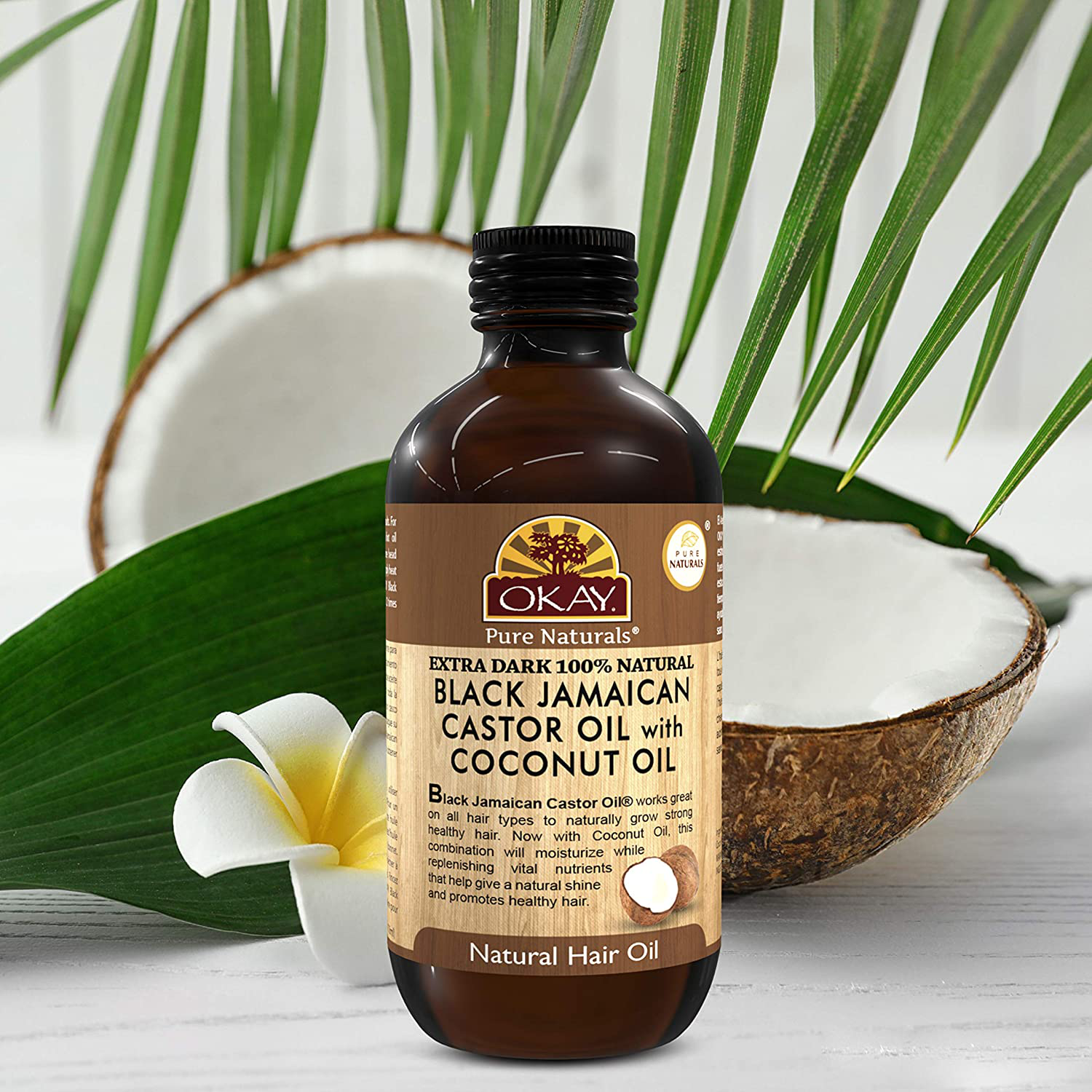 - One (1) OKAY | Extra Dark 100% Natural Black Jamaican Castor Oil with Coconut Oil | for All Hair Textures & Skin Types | Grow Strong Healthy Hair - Moisturize & Revitalize Skin