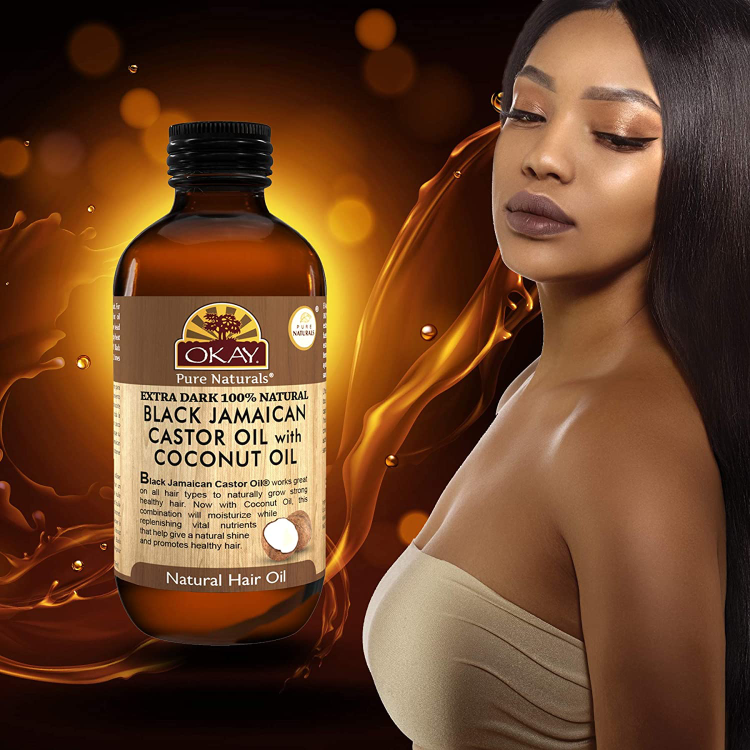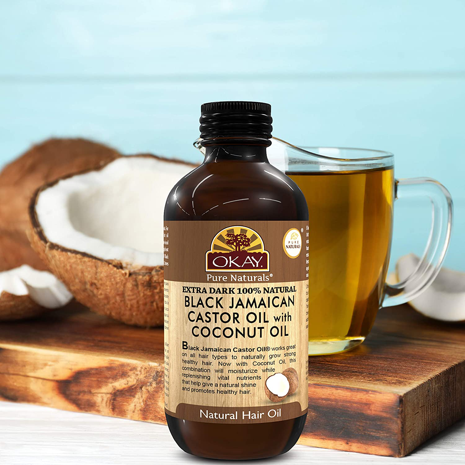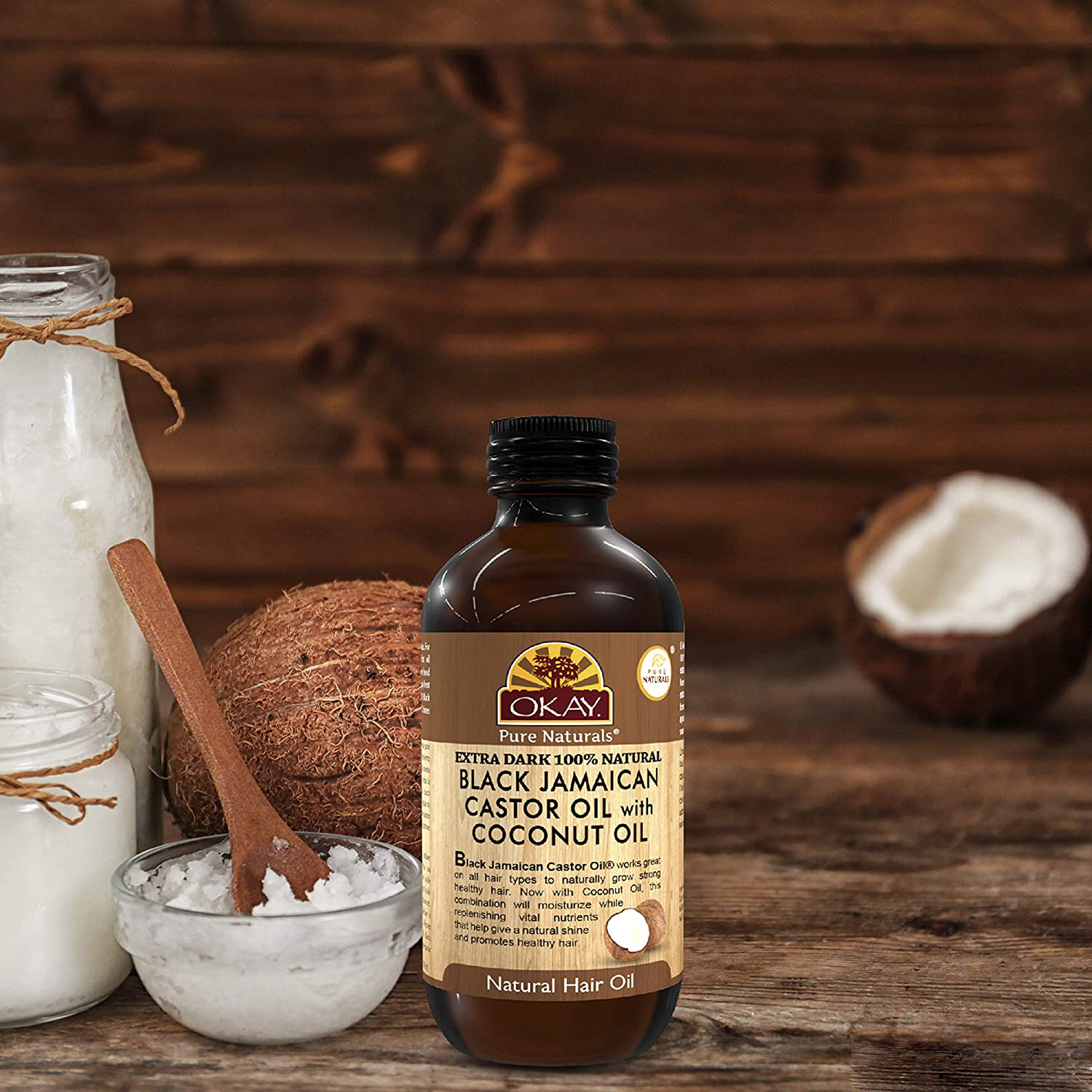 OKAY | Extra Dark 100% Natural Black Jamaican Castor Oil with Coconut Oil | for All Hair Textures & Skin Types | Grow Strong Healthy Hair - Moisturize & Revitalize Skin