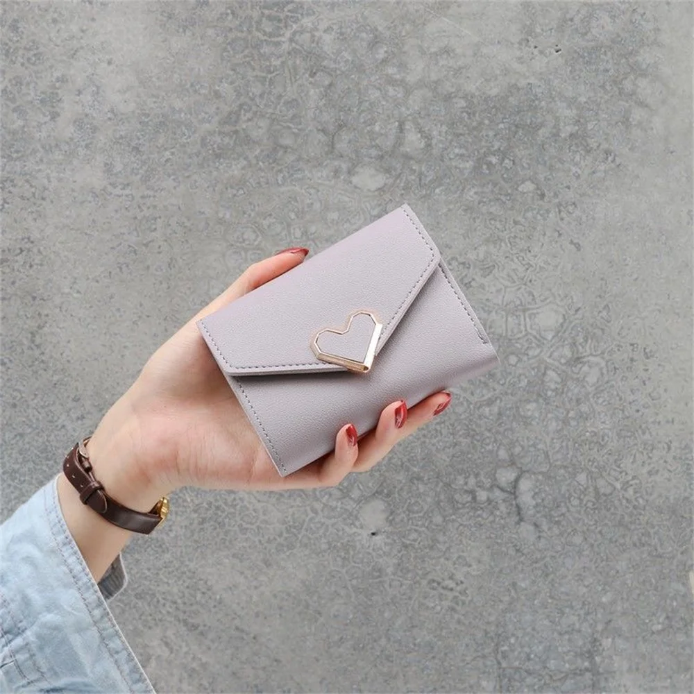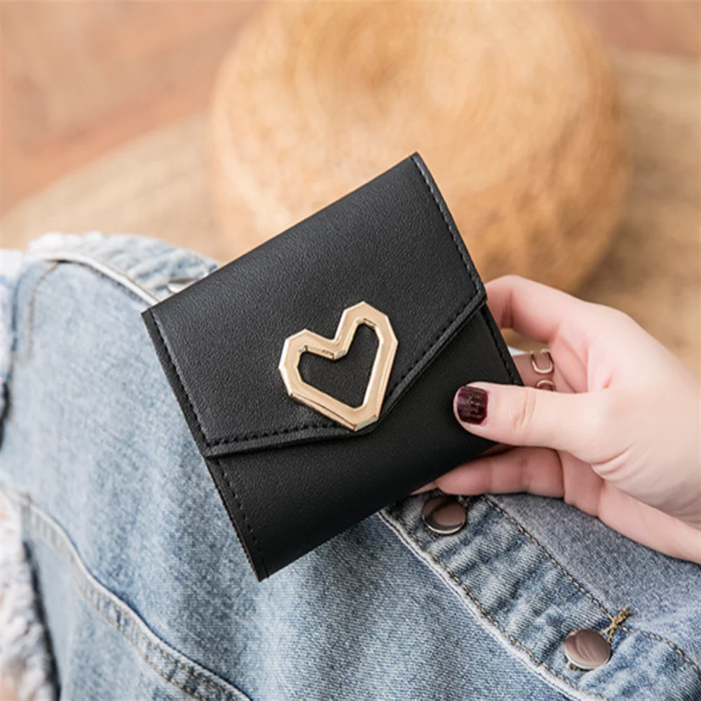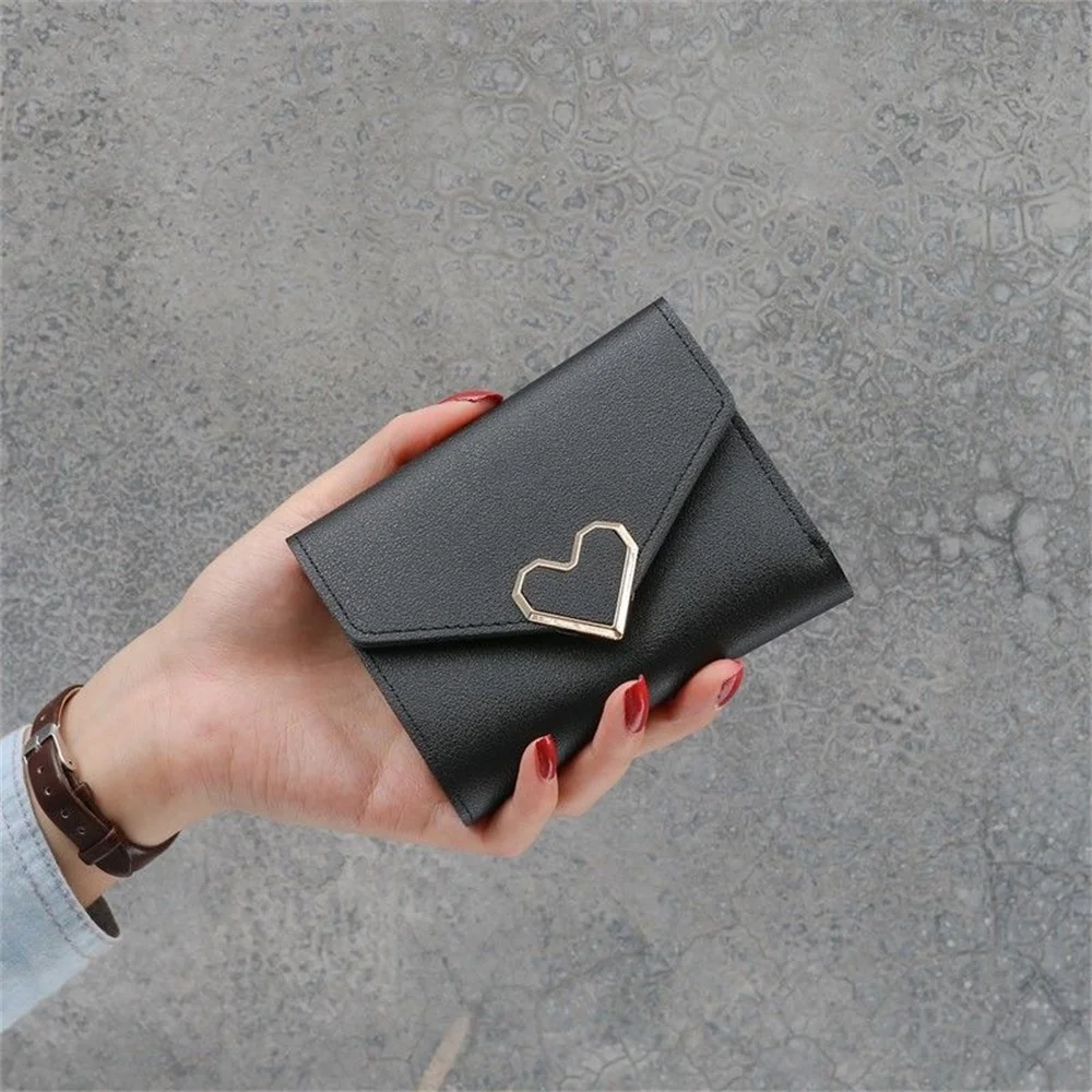 Women's Trifold Wallet, Heart-Shaped Clasp Card Holder - Elevate your accessory game with this stylish metal heart-shaped design, perfect for adding a unique and fashionable flair to your everyday essentials. Crafted with a high-quality snap closure, this accessory offers secure and reliable storage, keeping your items safe wherever you go. The detailed streamlined stitching not only reinforces durability but also adds a refined aesthetic that complements any outfit, making it an ideal choice for both function and fashion.
