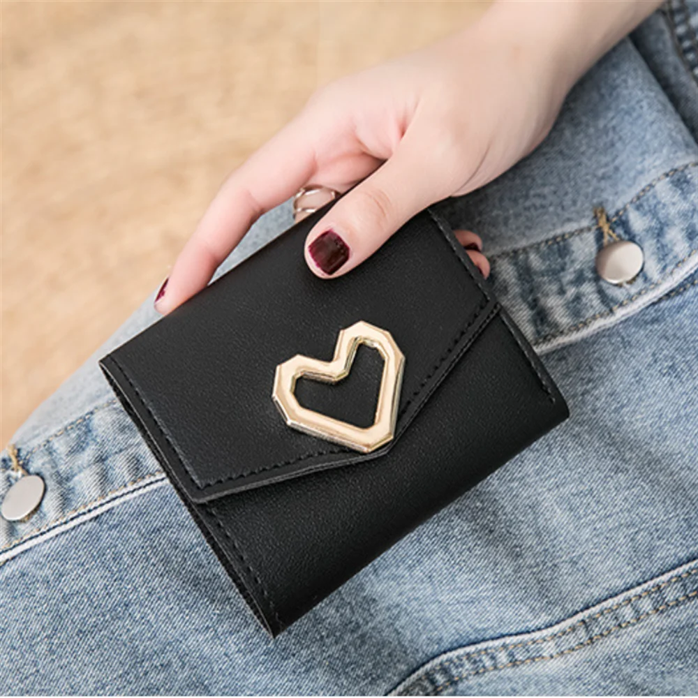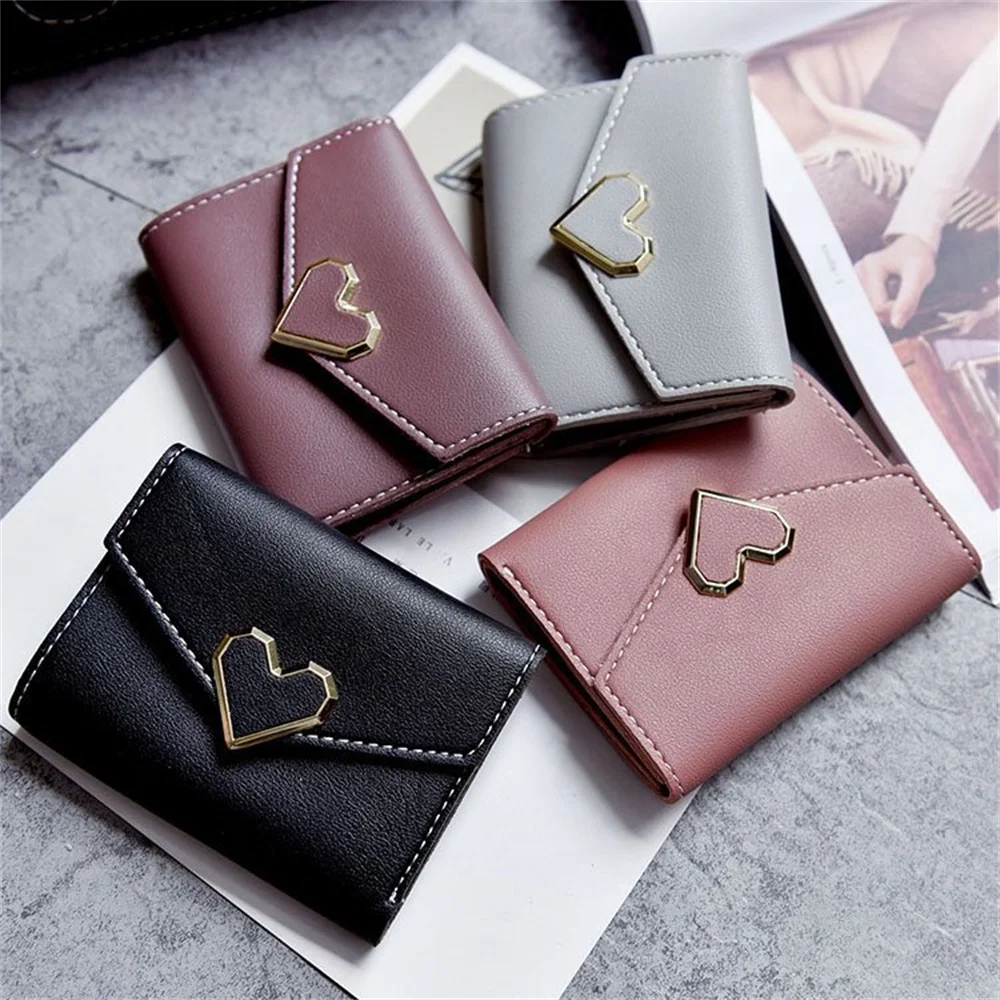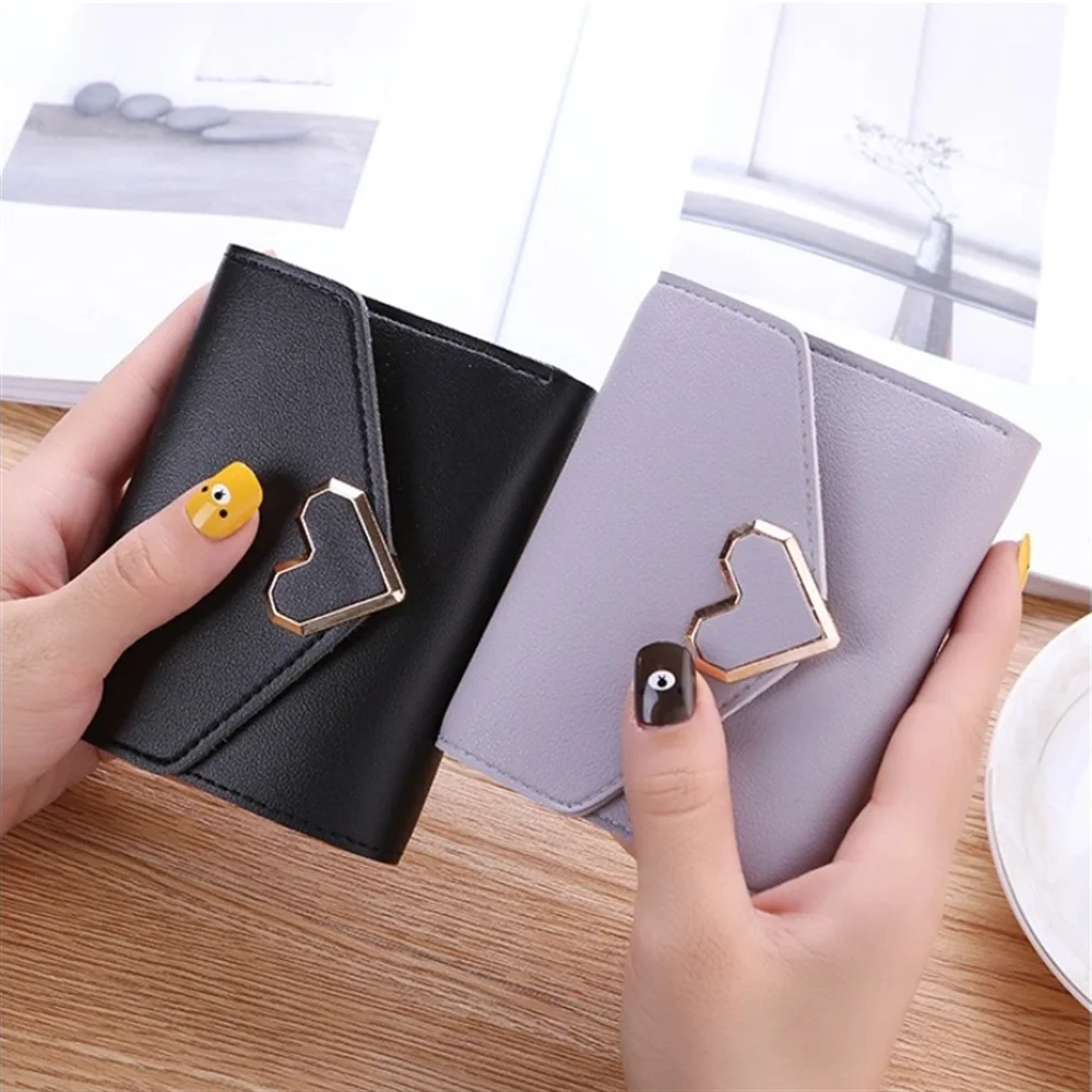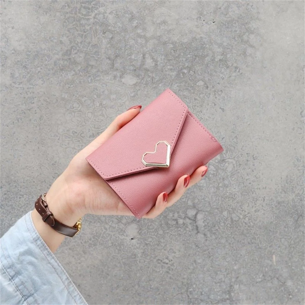 Women's Trifold Wallet, Heart-Shaped Clasp Card Holder - Elevate your accessory game with this stylish metal heart-shaped design, perfect for adding a unique and fashionable flair to your everyday essentials. Crafted with a high-quality snap closure, this accessory offers secure and reliable storage, keeping your items safe wherever you go. The detailed streamlined stitching not only reinforces durability but also adds a refined aesthetic that complements any outfit, making it an ideal choice for both function and fashion.